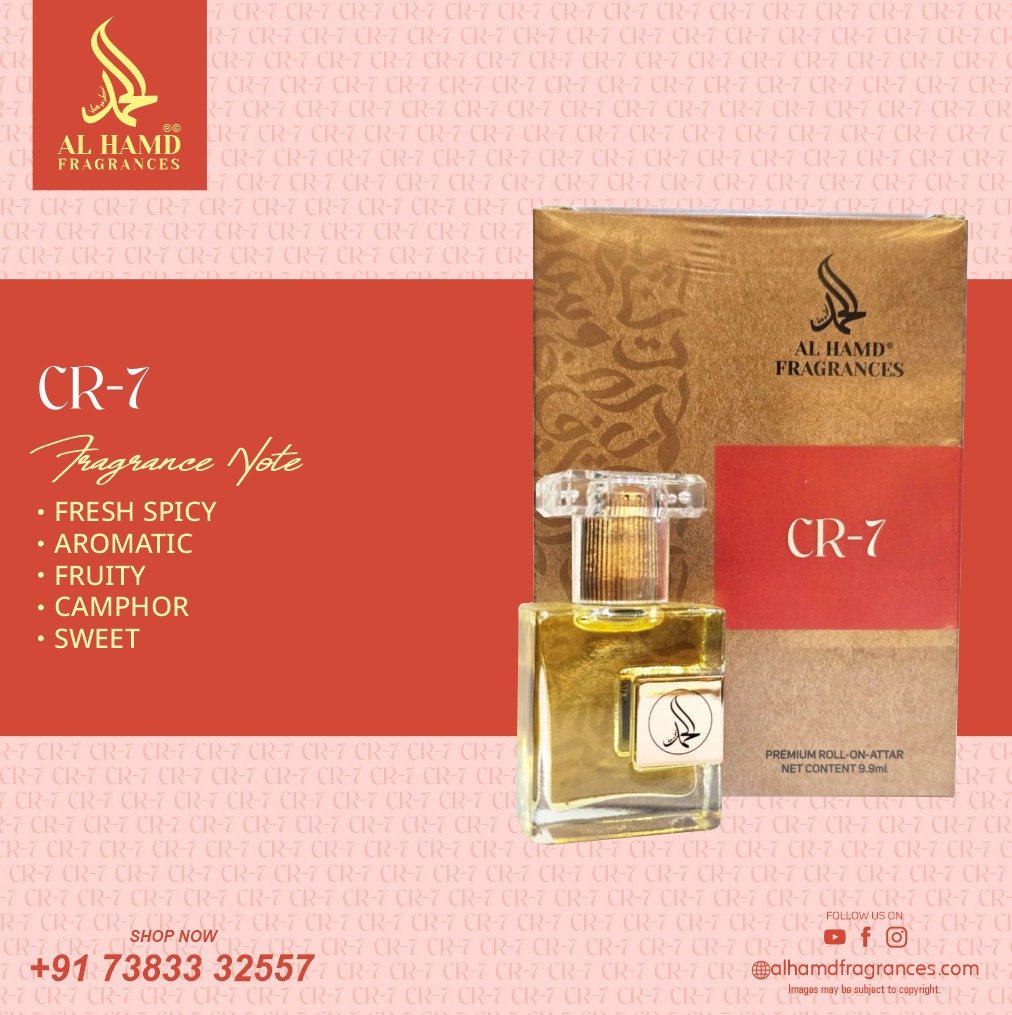 CR‑7 is a modern aromatic fougère attar featuring fresh lavender and spices over a warm, creamy vanilla-woody base—versatile, confident, and long-lasting.